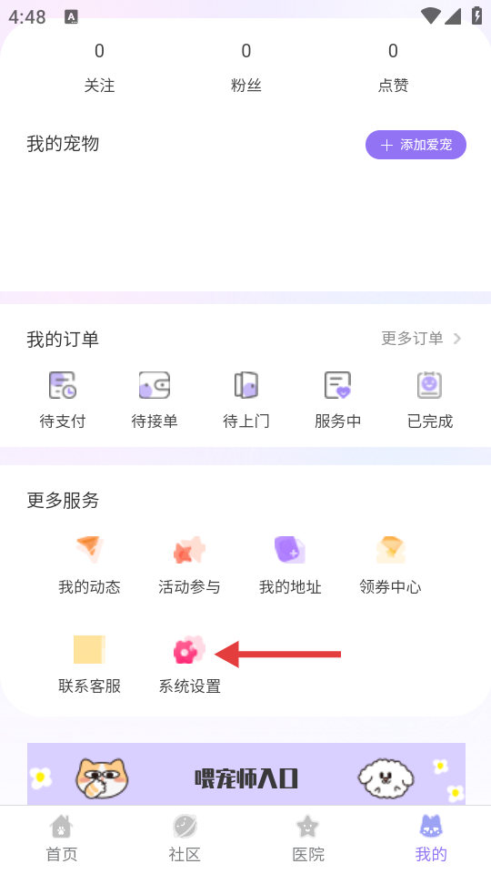 2、在【我的】页面中,找到并点击【系统设置】选项。
