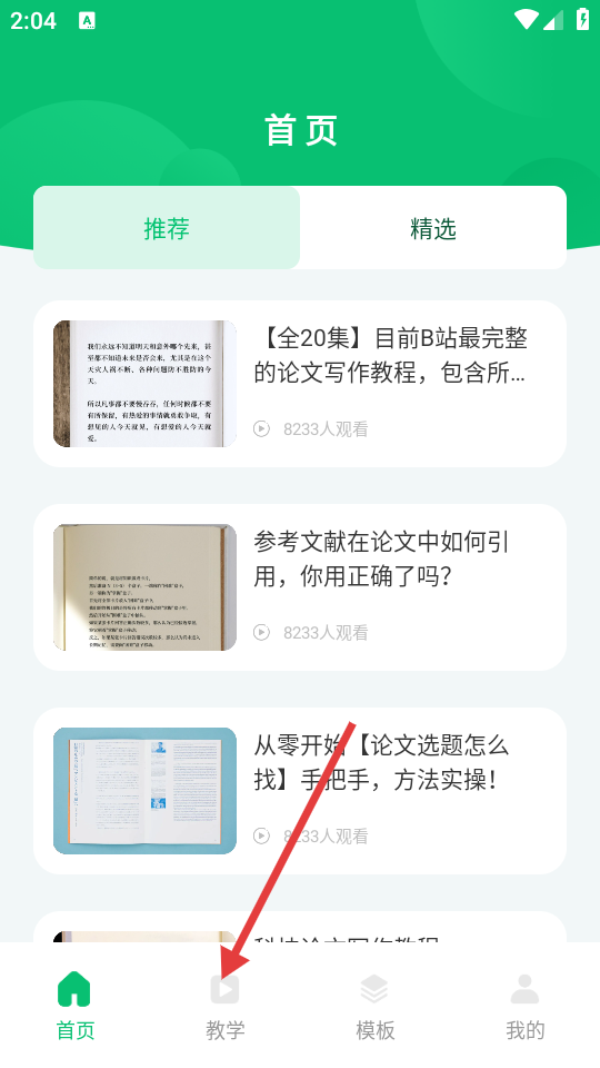 1、在首页,点击底部导航栏中的【教学】按钮,进入教学页面。