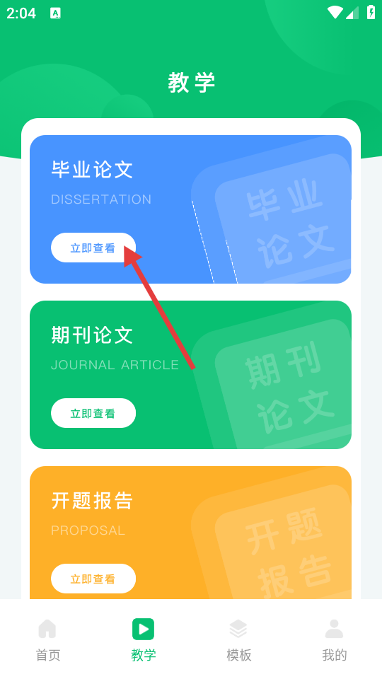 2、在【教学】页面中,找到【毕业论文】板块,点击【立即查看】。