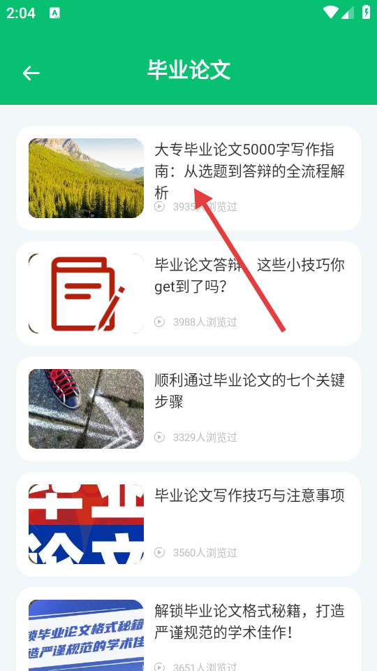 3、在毕业论文内容页面里,选择目标文章,点击进入详情页。
