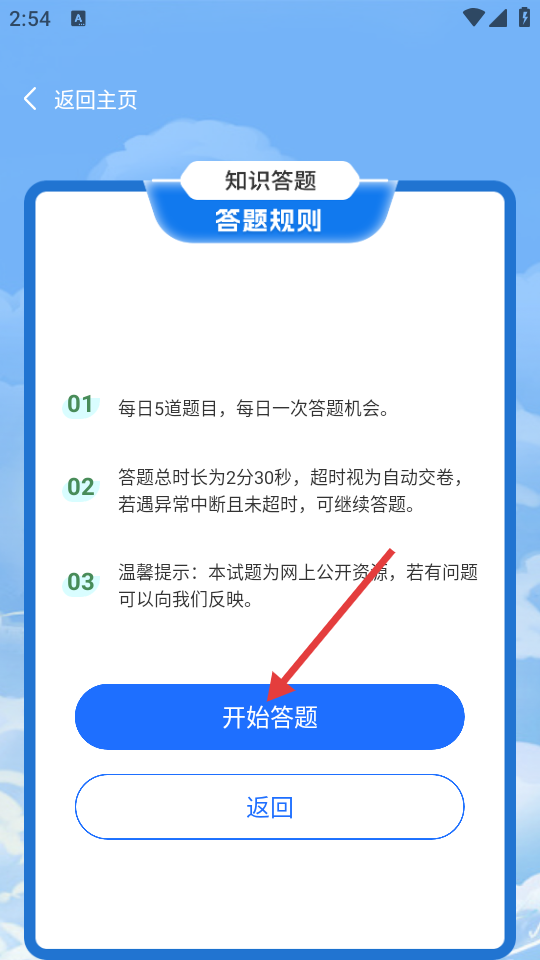 3、在答题规则介绍界面,点击【开始答题】按钮。