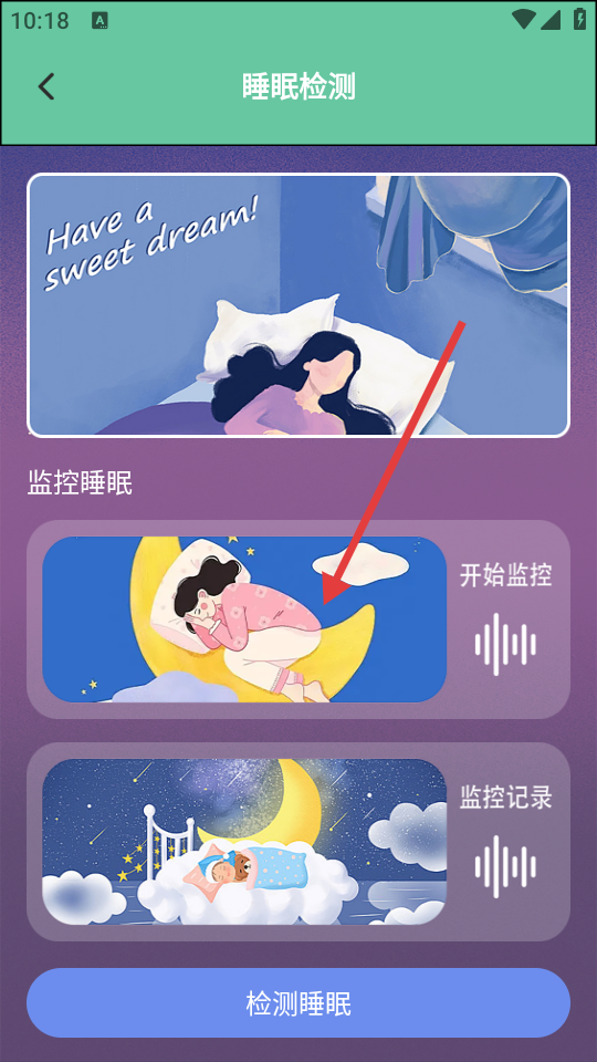 2、进入APP后,在首页点击【睡眠监测】选项,进入睡眠检测页面。