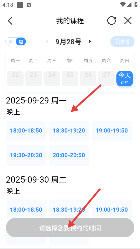 3、在课程预约页面,选择想要预约的日期和具体时间段。