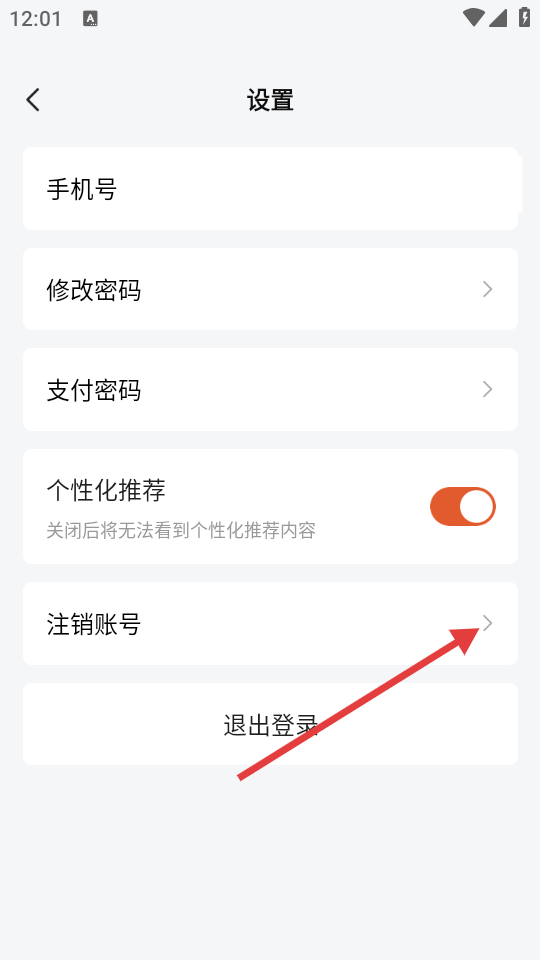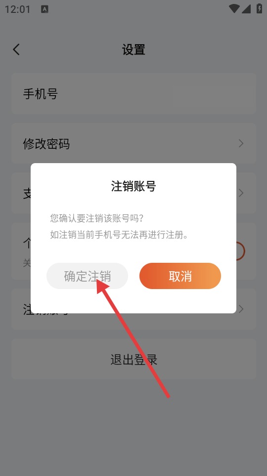 3、在设置页面,点击【注销账号】选项,弹出注销账号确认窗口。