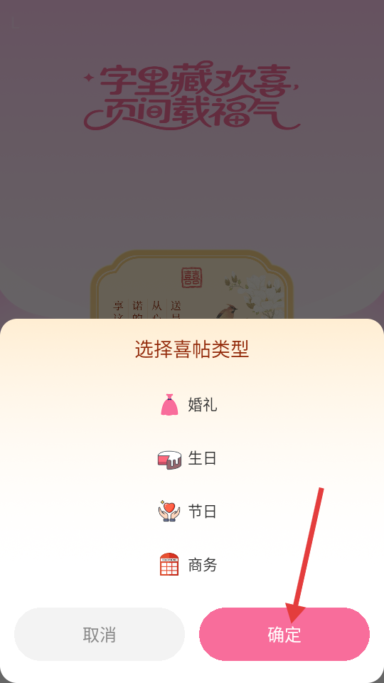 2、在选择喜帖类型弹窗中,挑选合适类型后点击【确定】按钮。