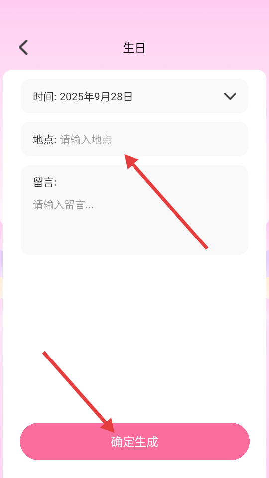 3、进入对应类型页面,输入地点等信息后,点击【确定生成】按钮。