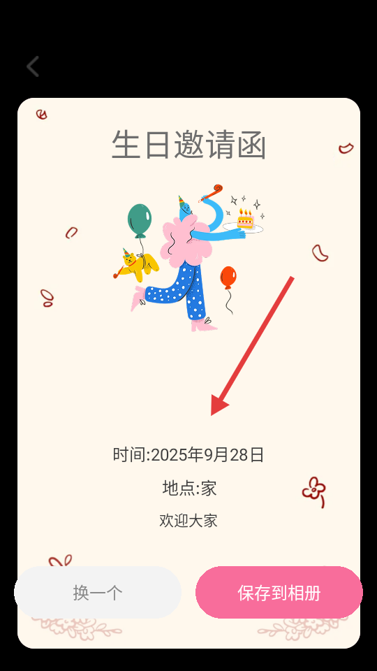 4、生成喜帖后,可查看内容,若满意点击【保存到相册】按钮留存。