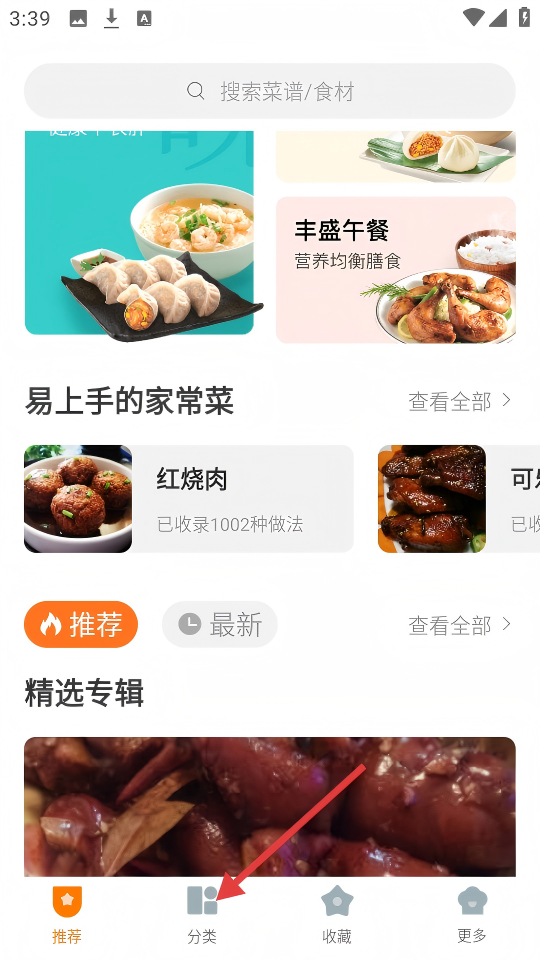 1、在推荐页面,点击底部【分类】,可进入分类页面。