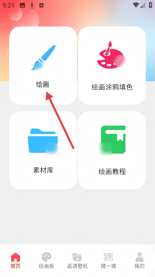 1、在首页点击【绘画】选项,进入绘画相关流程。