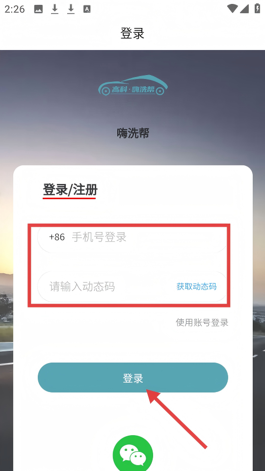 4、在【登录】页面,输入手机号,点击【获取动态码】,输入动态码后点击【登录】按钮。