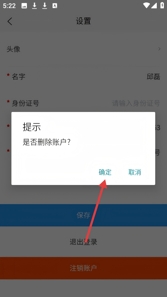 4、在弹出的【是否删除账户?】提示框中,点击【确定】按钮,完成账户注销。