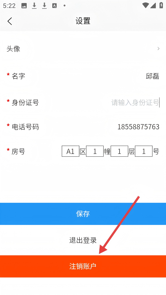 3、在设置页面,点击红色的【注销账户】按钮,弹出提示框。