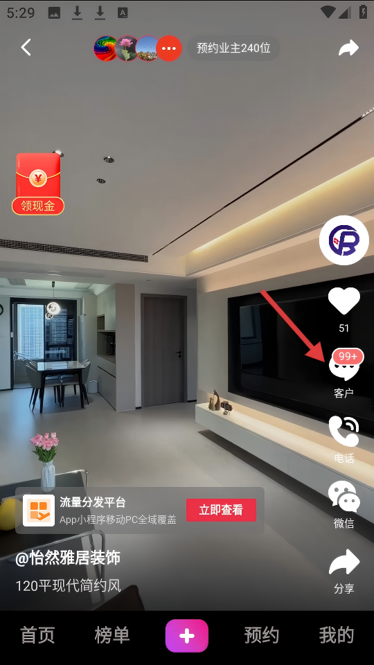 3、在作品详情页,点击【客户】,可弹出免费户型设计报名弹窗。