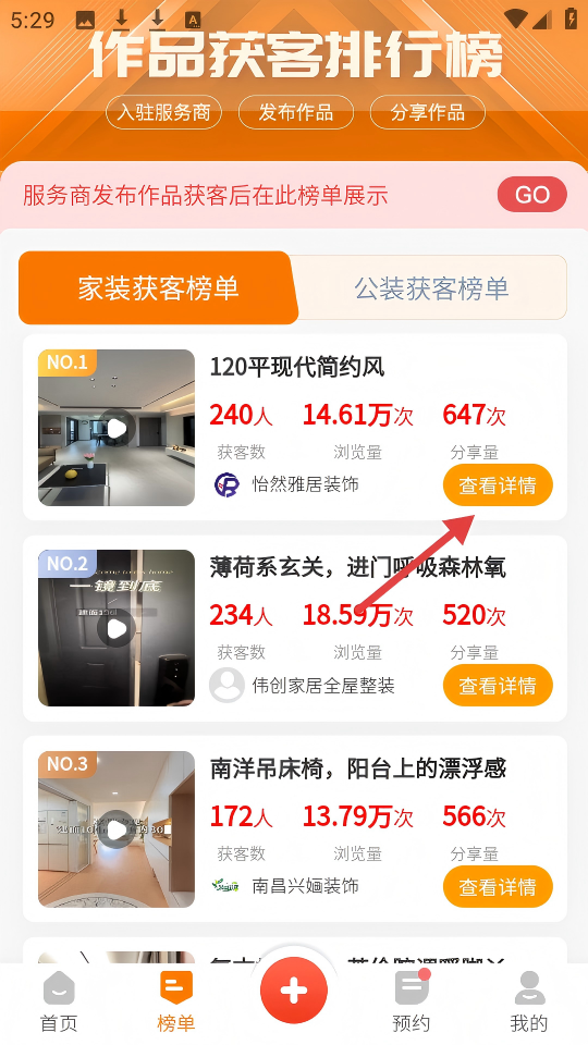2、在作品获客排行榜页面,点击【查看详情】,可进入对应作品的详情页。