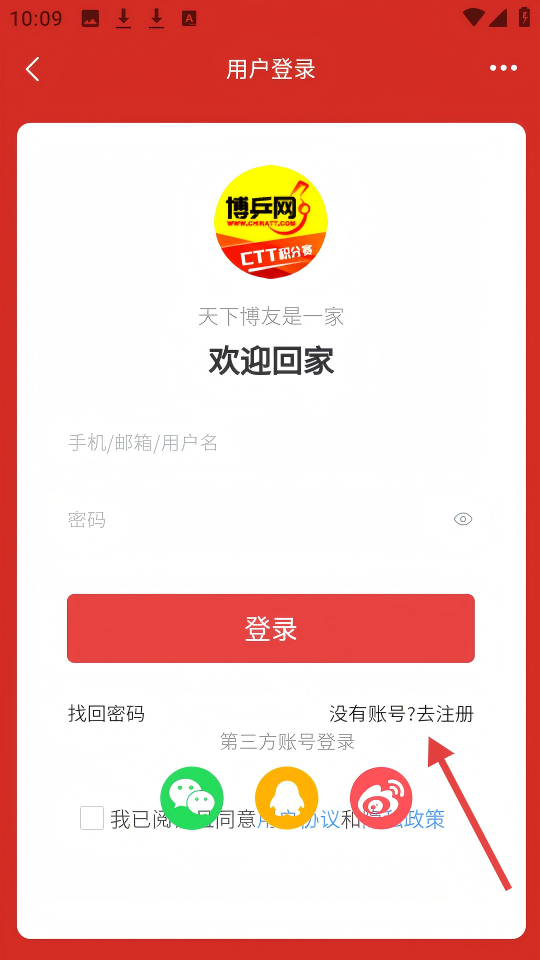3、在【用户登录】页面,点击【没有账号?去注册】进行注册。