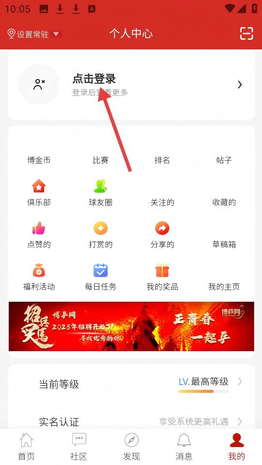 1、在博乒网首页,点击底部【我的】,进入个人中心页面。