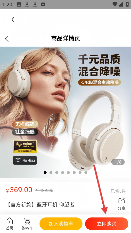 3、进入【【官方新款】蓝牙耳机仰望者】的商品详情页后,点击【立即购买】按钮。