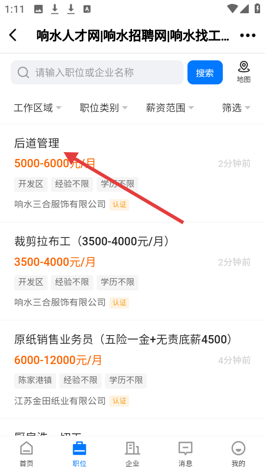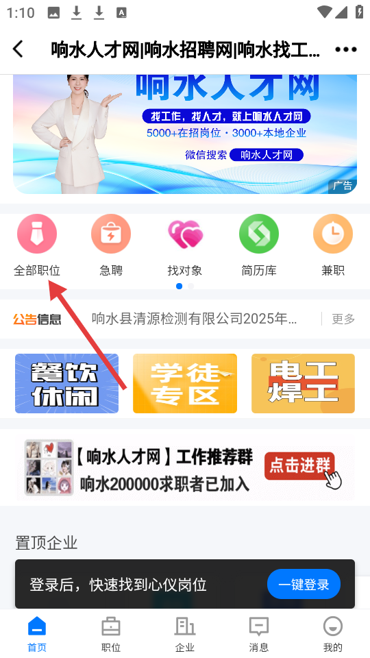 2、在【响水人才网】页面,点击【全部职位】,查看所有职位列表。
