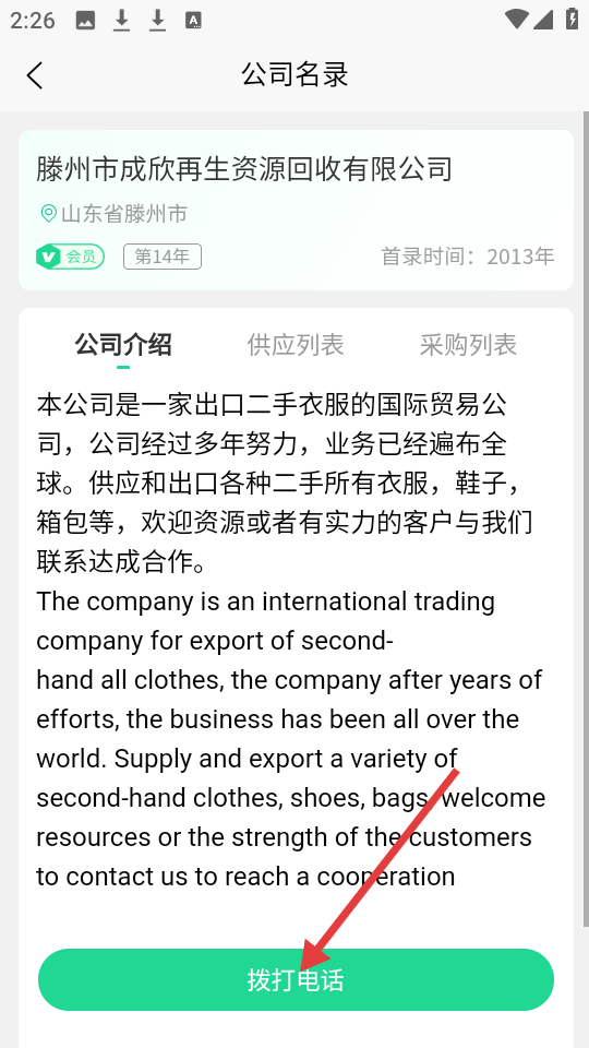 3、在公司名录详情页,点击【拨打电话】联系该公司。