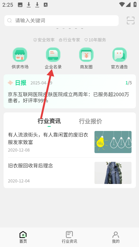 1、在首页点击【企业名录】,进入企业名录页面。