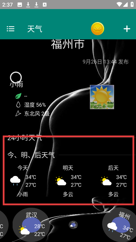 4、查看福州市【今、明、后天气】,了解近期天气情况。