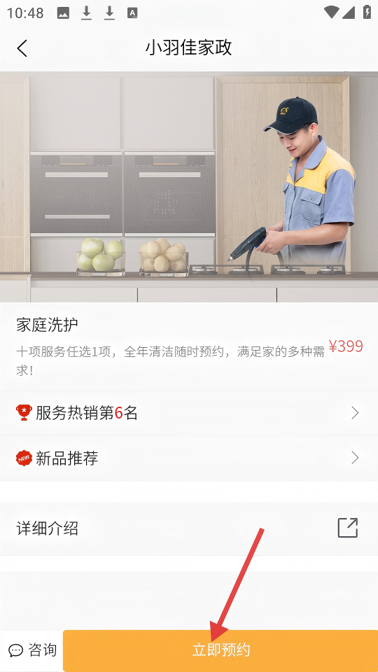 3、在【家庭洗护】服务详情页,点击【立即预约】,进行服务预约。