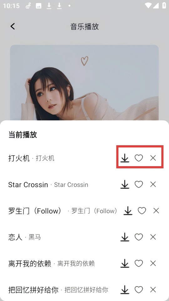 4、在【音乐播放】页面,可对当前播放的歌曲进行【下载】【收藏】或关闭操作。