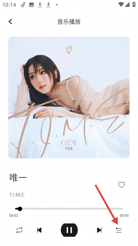 3、在歌曲【唯一】的播放页面,点击右下角的列表图标,可查看播放列表。