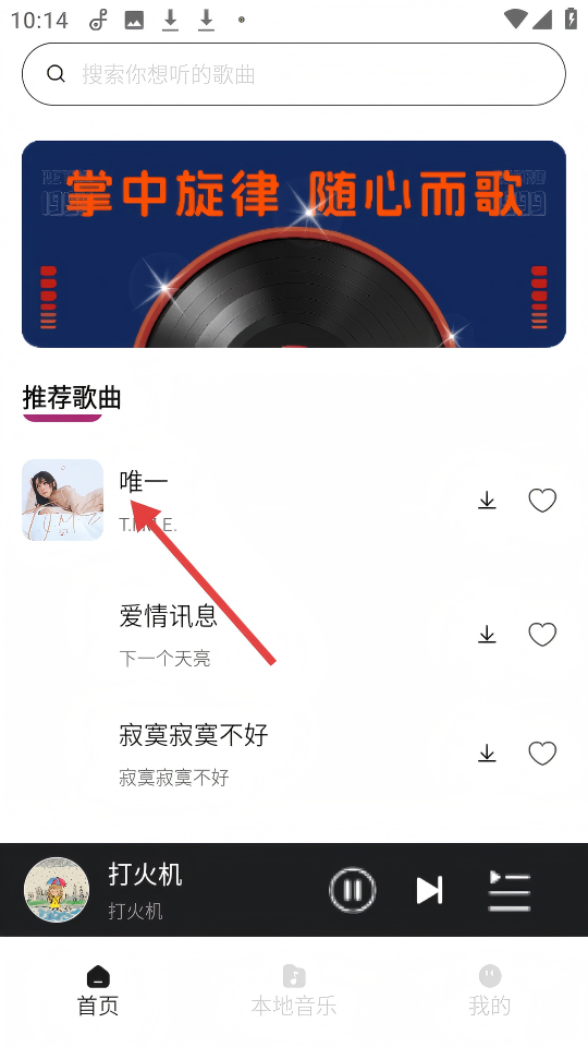 2、在首页【推荐歌曲】列表中,点击歌曲【唯一】,即可进入该歌曲的播放页面。