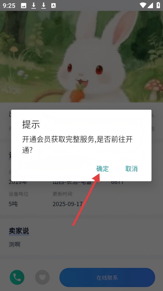 4、弹出【开通会员获取完整服务,是否前往开通?】提示框时,点击【确定】按钮。
