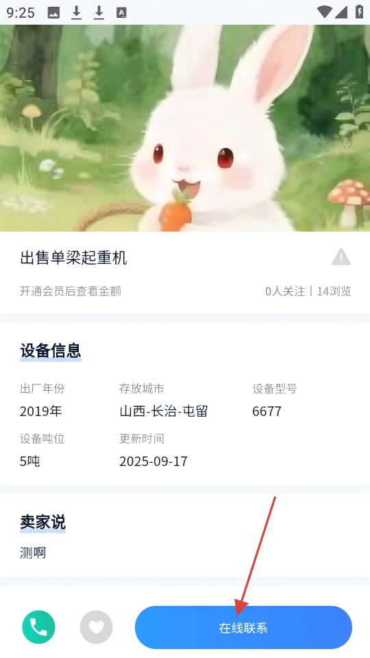 3、在单梁起重机详情页,点击【在线联系】按钮。