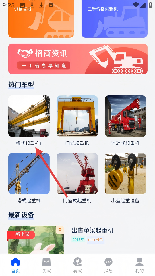 1、在首页热门车型板块,点击【桥式起重机1】。