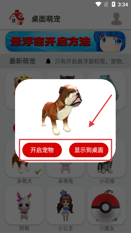 3、获取后,可点击【开启宠物】或【显示到桌面】。