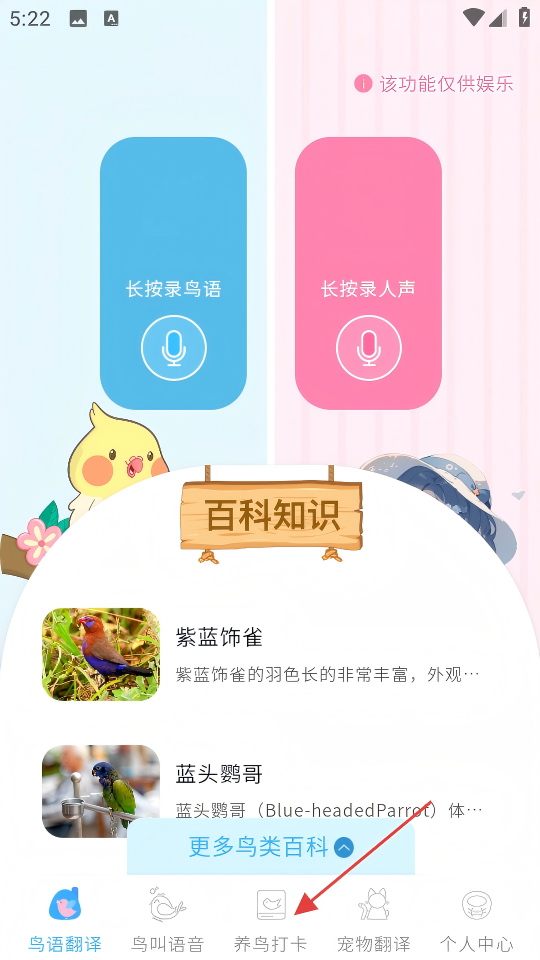 5、鸟类百科丰富:提供大量鸟类习性、生活习惯等百科知识,帮助用户深入认知鸟类,拓展养鸟相关学识。