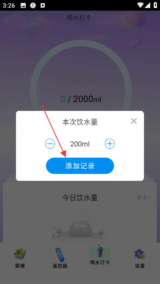 3、在“本次饮水量”弹窗中,确认饮水量后,点击【添加记录】。