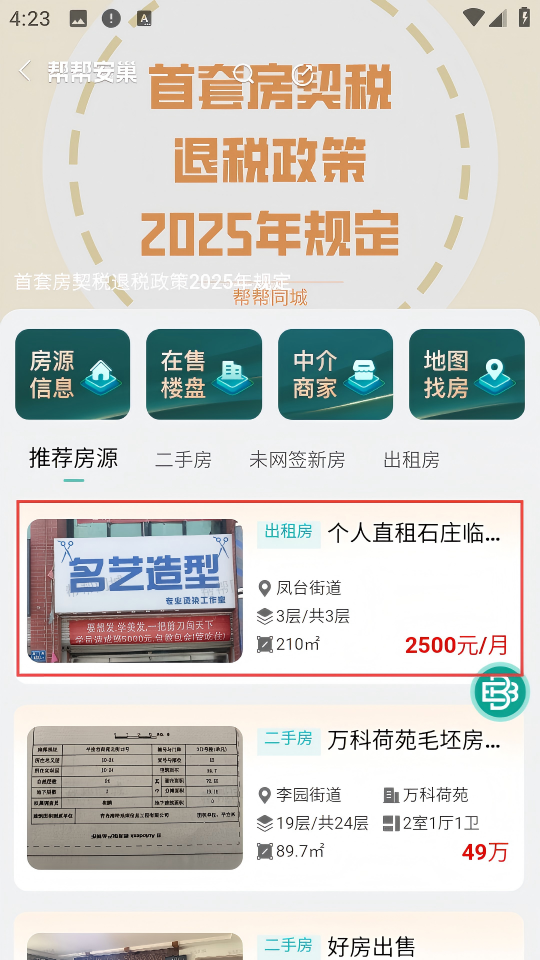 5、房产信息丰富:每日更新大量房产相关信息,包括新房、二手房、租房数据,为用户提供全面的房产参考。