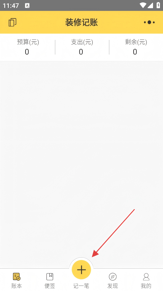 1、点击底部【记一笔】,进入“记一笔”页面。