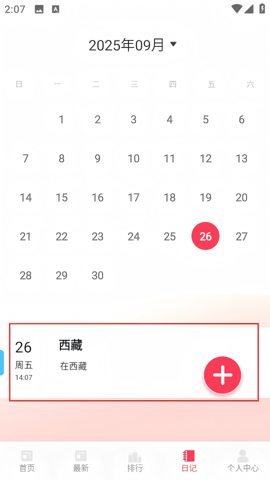 4、保存后,日历界面会显示2025年9月26日对应的日记条目。