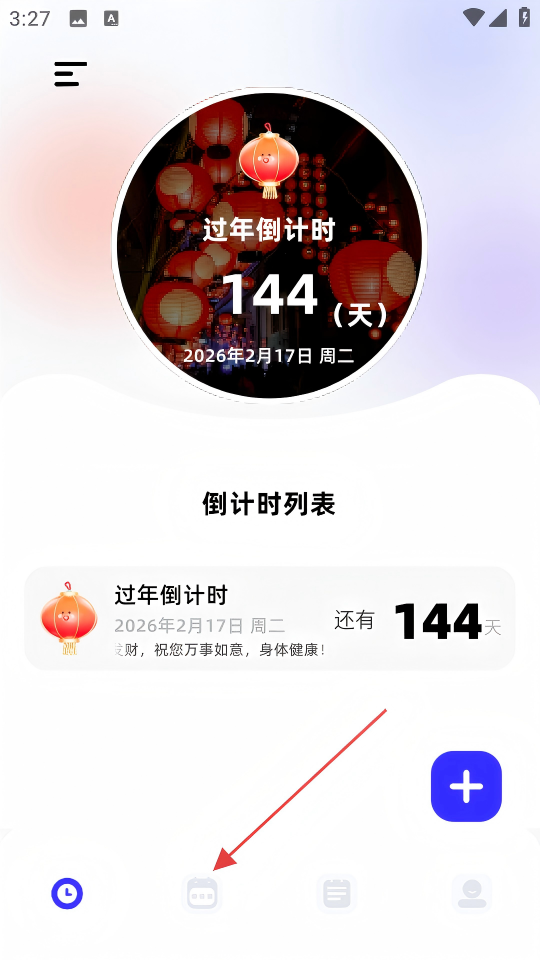2、在日历界面点击右下角蓝色“+”号,进入“添加纪念日”页面。