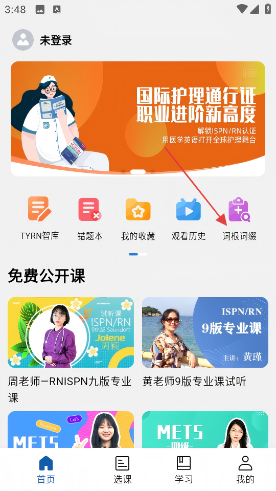 1、在首页点击【词根词缀】,进入词根词缀学习页面。