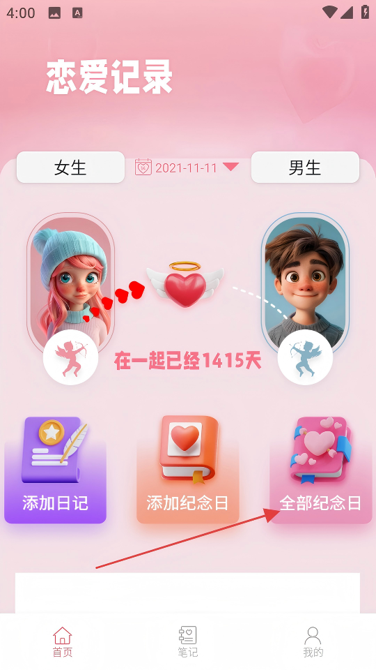 1、点击【全部纪念日】,进入全部纪念日页面。