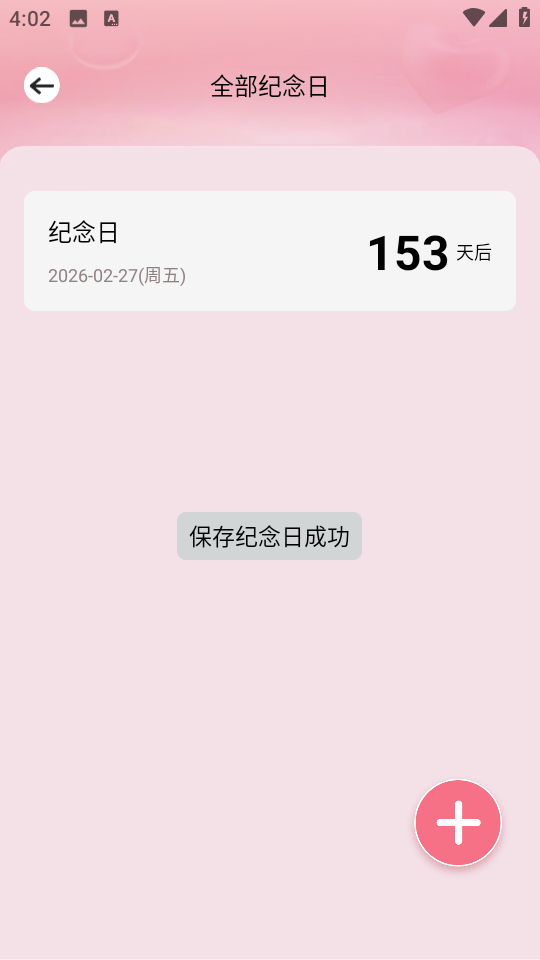 2、点击页面右下角红色“+”号,可进行纪念日信息设置。