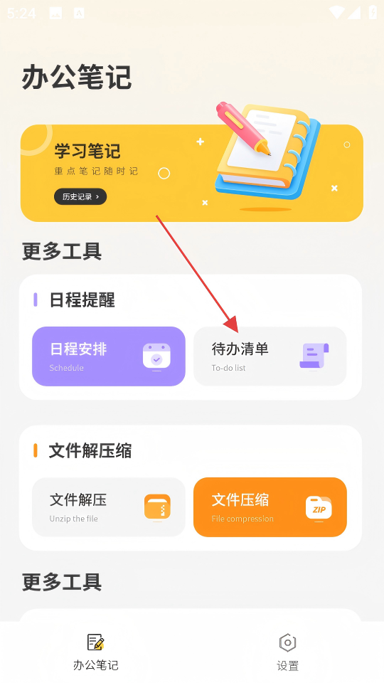 1、在办公笔记首页,点击【待办清单】,进入待办清单页面。