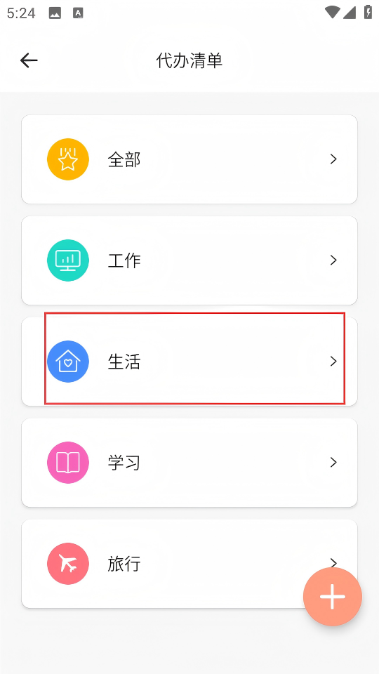 2、在待办清单页面,选择【生活】分类,进入生活类待办清单页面。