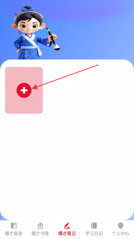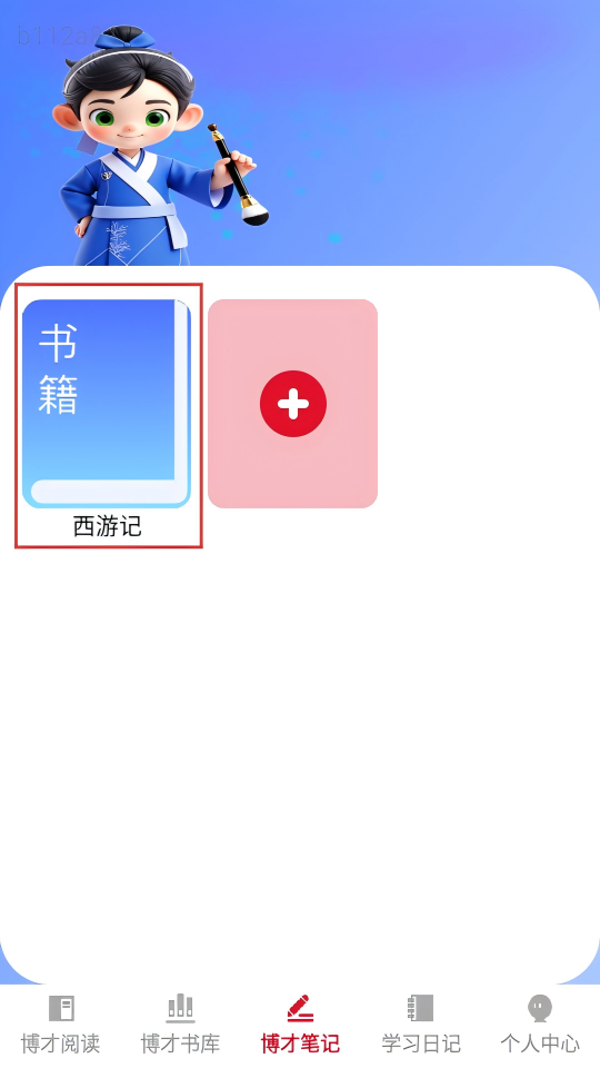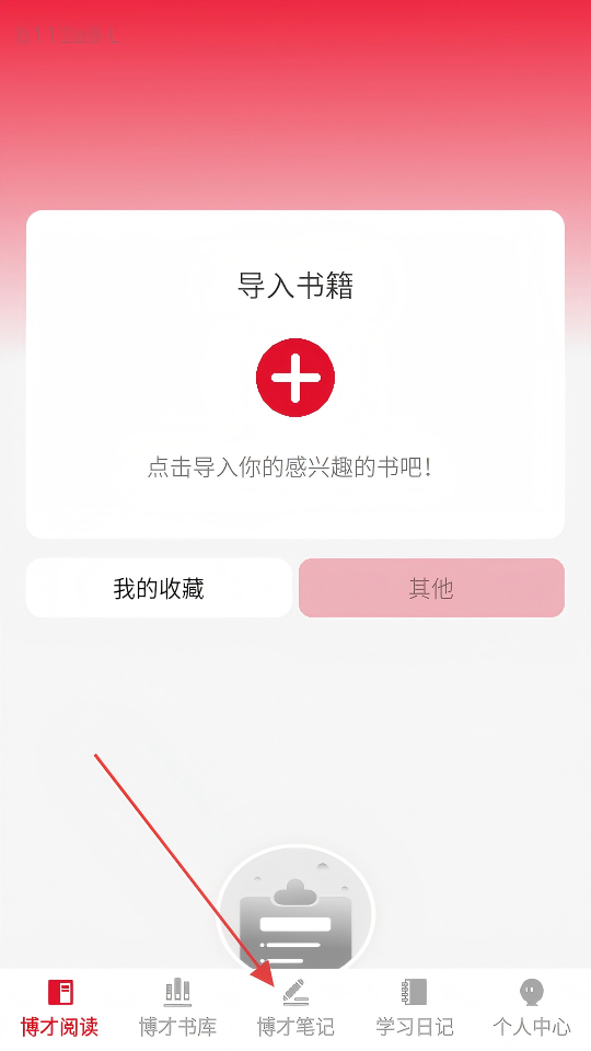 2、在博才笔记页面,点击带有红色“+”的粉色卡片,进入添加书本页面。