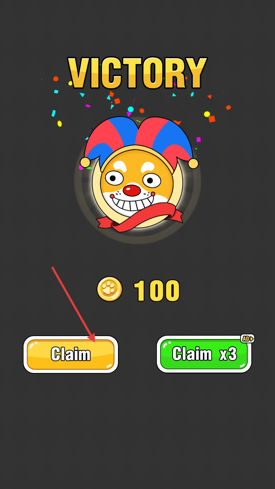 4、通关后,点击【Claim】按钮,领取100金币奖励。