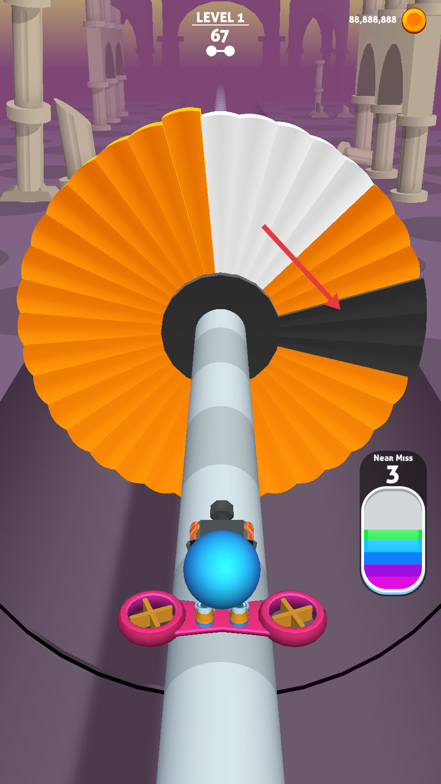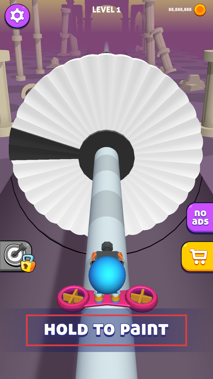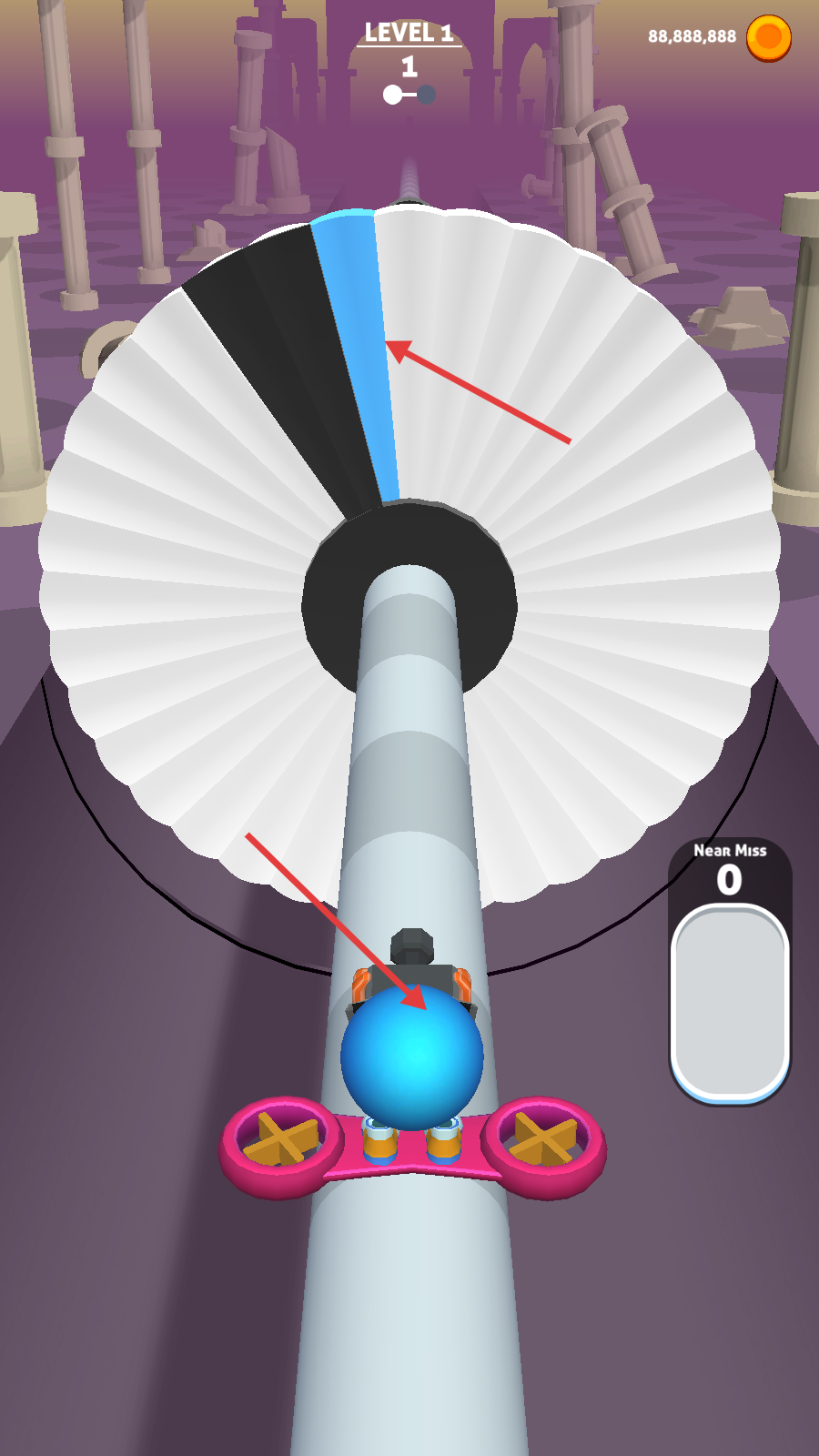 2、操控蓝色球体,在转动的扇叶上涂色。