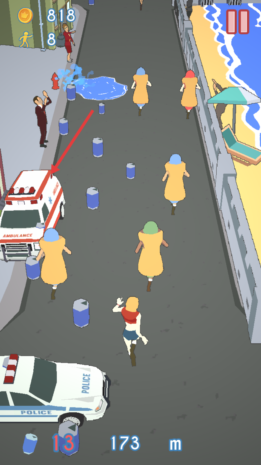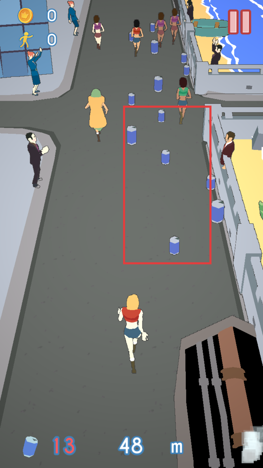2、操控角色在道路上奔跑,收集蓝色罐子。