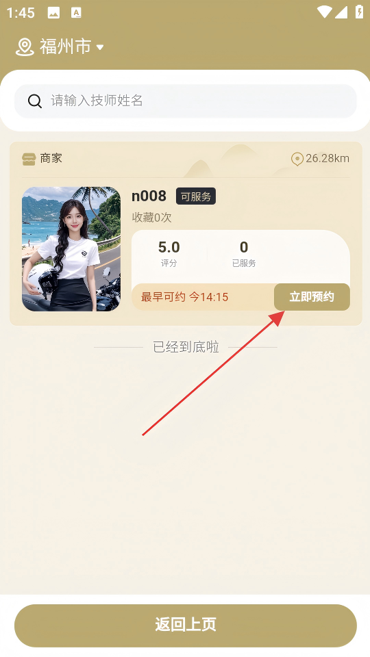 4、在技师选择页面,选择合适的技师,点击【立即预约】,完成中式推拿的预约。