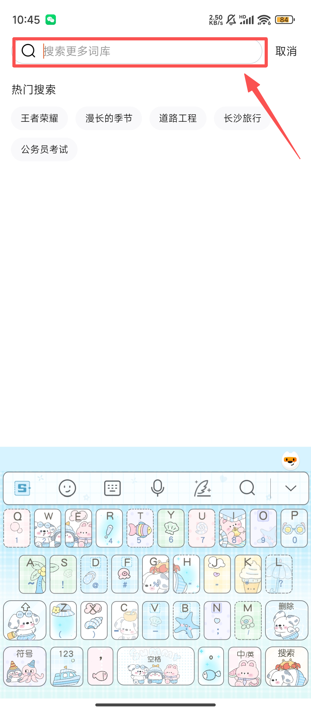 3、点击搜索框后,就能在里面输入想要的词库名称啦,下面还有热门搜索供我们参考,很实用呢。